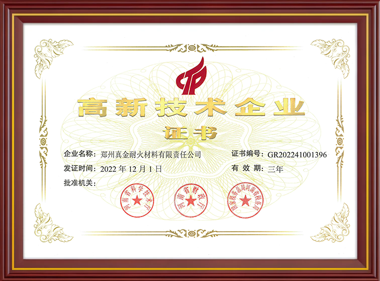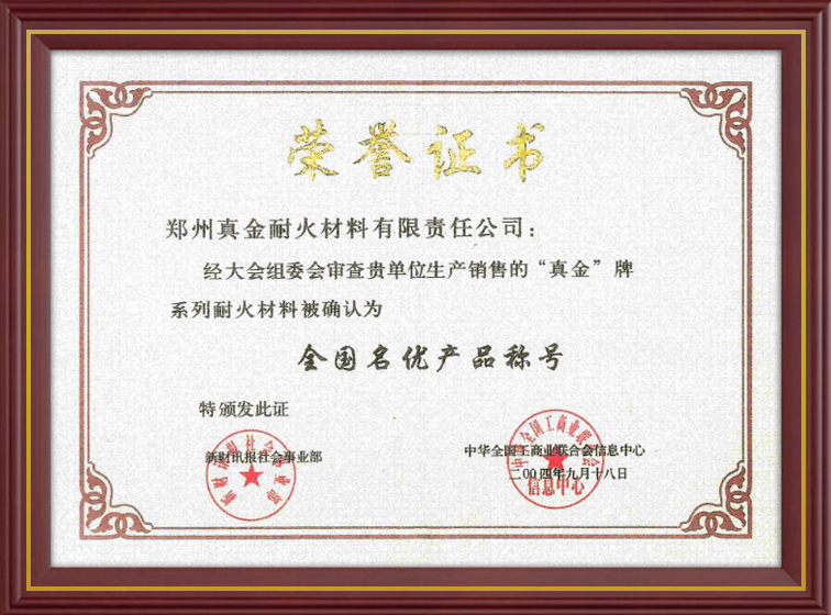 真金耐火榮譽資質(zhì)